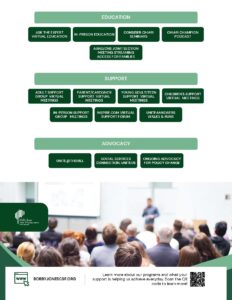 We hold a support meeting for those who are HIGH SCHOOL and COLLEGE aged every last Sunday of the month at 5:00pm ET, for ADULTS every last Tuesday of the month at 7:00pm ET, and for PARENTS and CHILDREN quarterly, on the second Tuesday of the month.